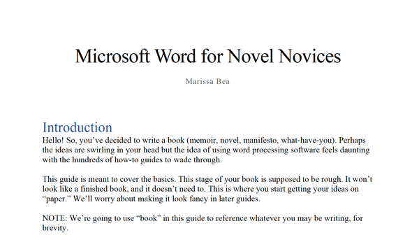 Unpublished - Sample • January 18 2026 Microsoft Word for Novel Novices Basics of MS Word for newbies writing novels